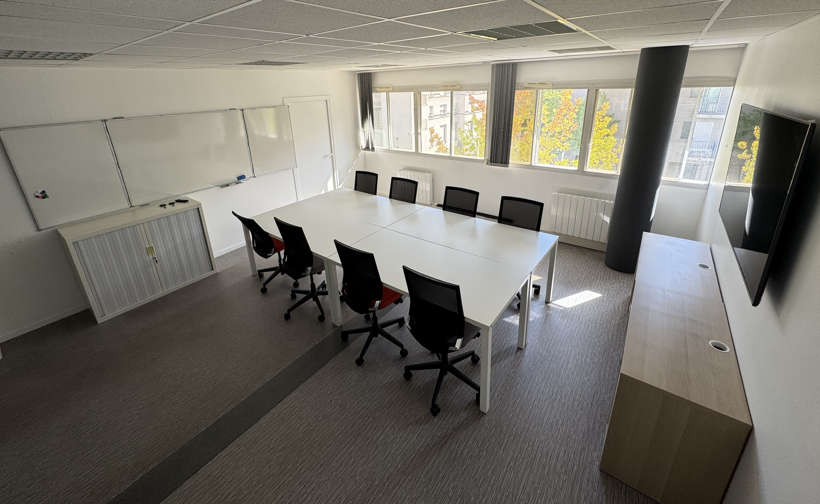 Que ce soit pour recevoir un client, organiser une réunion d’équipe ou préparer un projet important, cette salle de réunion offre un environnement calme, pratique et confidentiel.